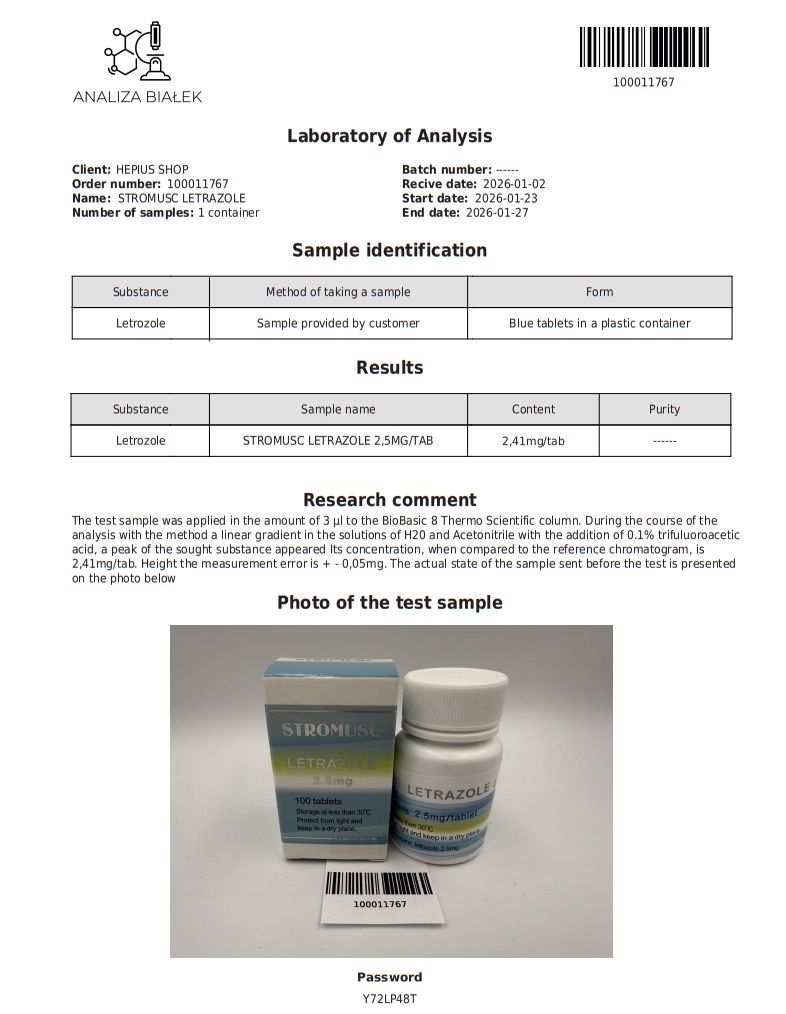 LETRAZOLE 100 tabs 2,5mg each from HEPIUS brand.