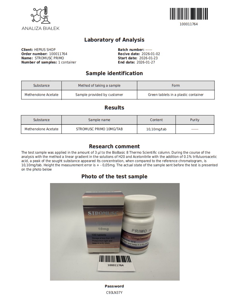 Primobolan is a synthetic derivative of dihydrotestosterone (DHT). It works by increasing protein synthesis, promoting nitrogen retention, and stimulating muscle growth while improving muscle density and strength. Unlike some other steroids, Primobolan is not aromatized (it doesn’t convert into estrogen), so it does not cause estrogenic side effects such as gynecomastia (male breast development).