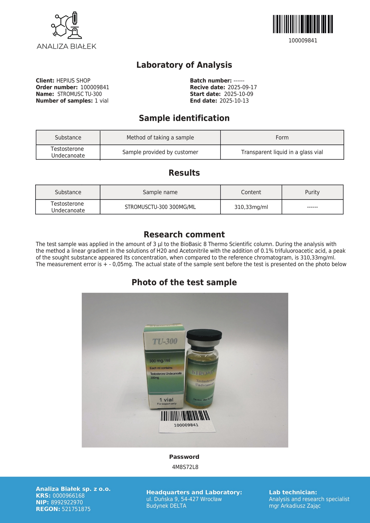 Testosterone Undecanoate STROMUSC (HEPIUS brand)